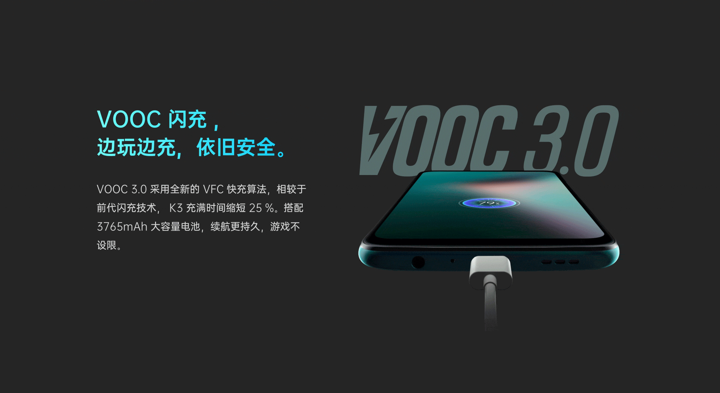 2019-05-24官方回复:亲爱哒O粉,非常感谢您对我们产品的肯定以及耐心评价,K3采用6.5英寸全景屏设计,屏幕无遮挡,屏占比更高,正面看上去全都是屏;采用3D渐变机身,有神秘稳重的秘境黑、纯净高贵的晨曦白以及个性时尚的星云紫三个颜色,同时采用高通骁龙710处理器以及6G运行内存,再加上VOOC闪充3.0的3765mAh大电池容量;后置1600W+200W双摄,支持超清夜景2.0、人像模式、炫彩模式;无论外观、玩游戏还是拍照都能带给您很好的体验;您在后续使用中有任何问题都可以联系我们在线客服,我们有专业的客服团队为您排忧解难~